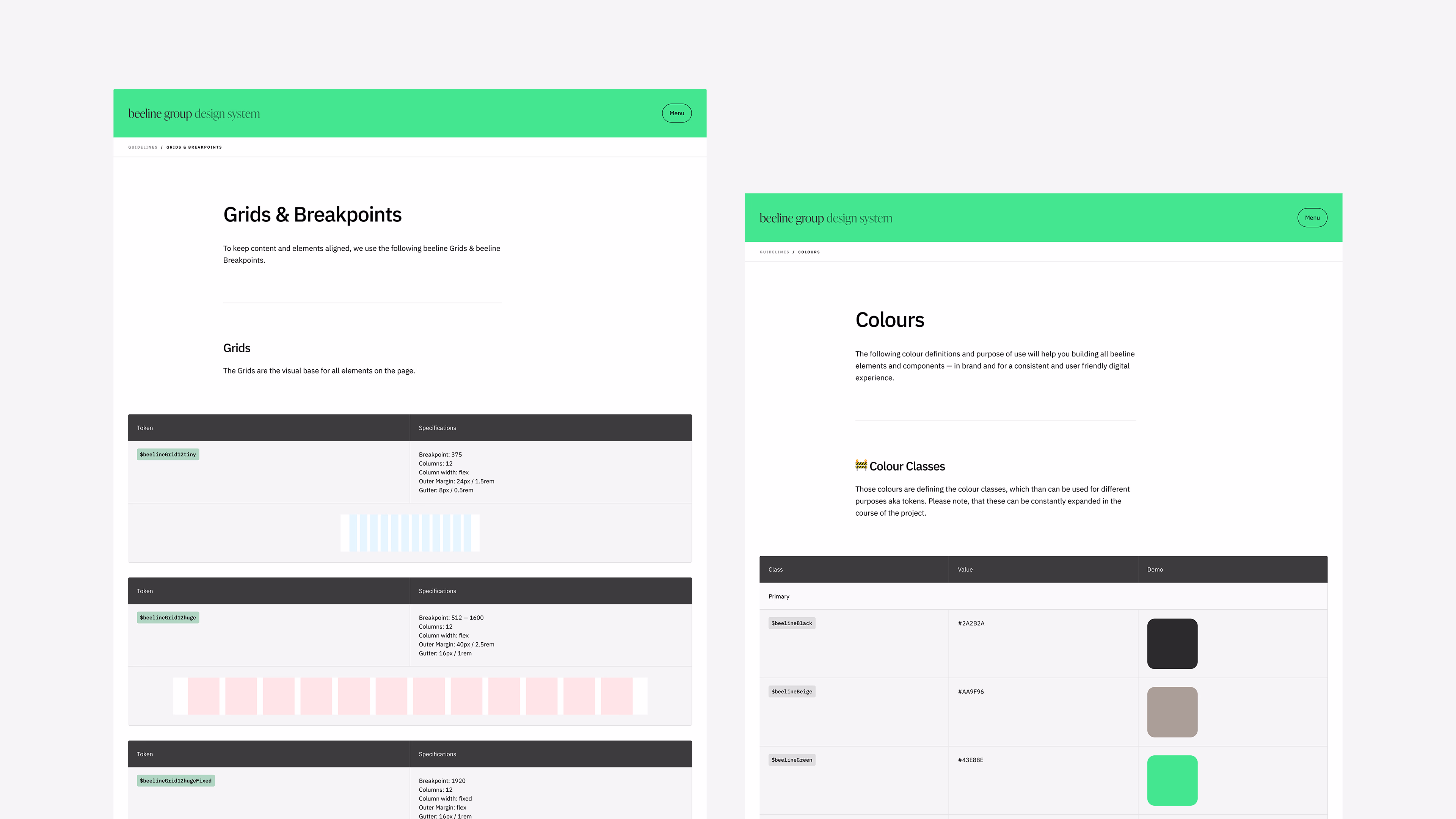 The design system can be navigated in a separate Figma prototype which contains all details from grids and patterns to real prototypes for aspects such as navigation behaviour.