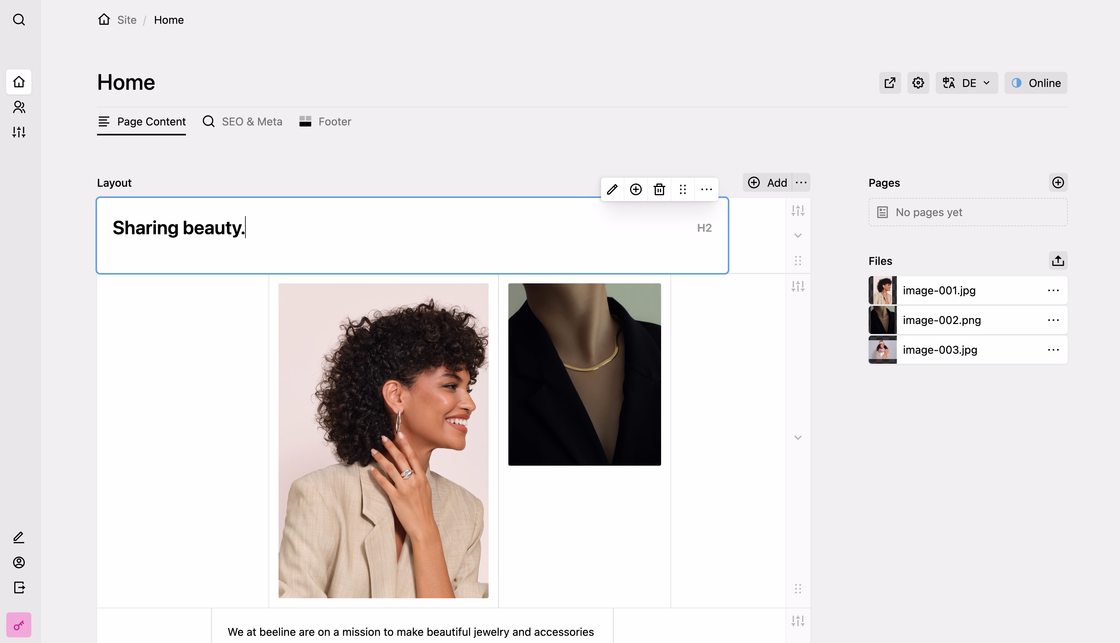 Kirby CMS is one of the best performing and most user-friendly content management systems on the market. The CMS adapts to the needs of the client, not the other way around. Kirby CMS stores the content in simple text files, whereas pages are created as folders. Thanks to the lean structure, all pages can be configured as multilingual with minimal effort.